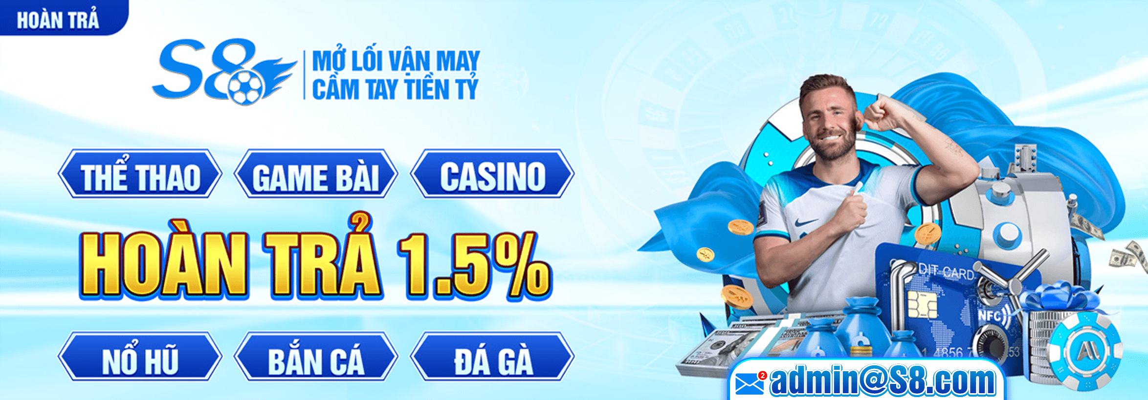 Hiện nay nhà cái s8s55.com áp dụng ưu đãi hoàn trả với tất cả các trò chơi, bất kể cược thắng hay thua người chơi đều được hoàn trả 1,5% số tiền vé cược. Không giới hạn số lần.